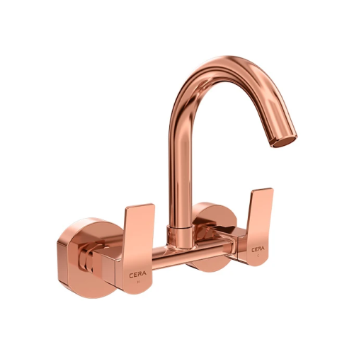 CERA SYLVINA Rose Gold QUARTER TURN Sink mixer (wall mounted) with 150 mm